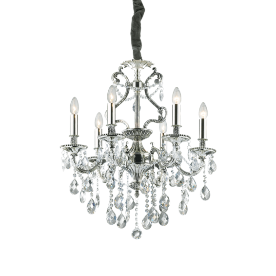 Корпус из литого металла цвета старинного серебра или золота. GIOCONDA SP6 код-060507.Восьмиугольные и круглые подвески из хрусталя с фацетом. Цепь скрыта бархатной тканью.