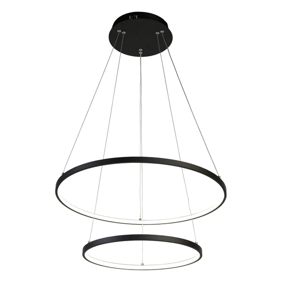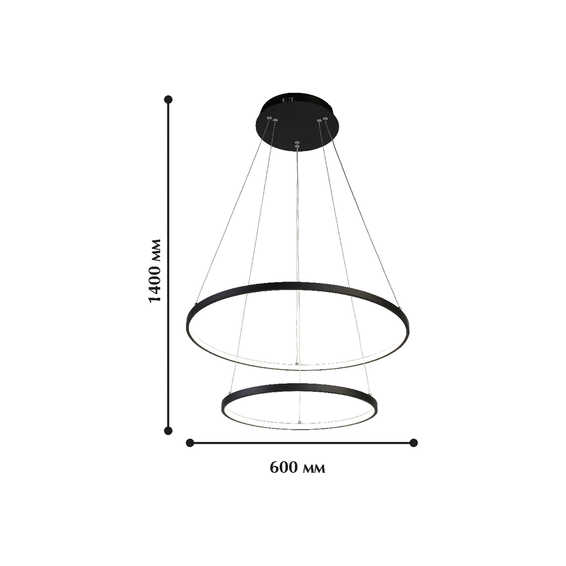 Каркас светильника из металла черного цвета, тросы регулируются по высоте, акриловый рассеиватель LED белого матового цвета.