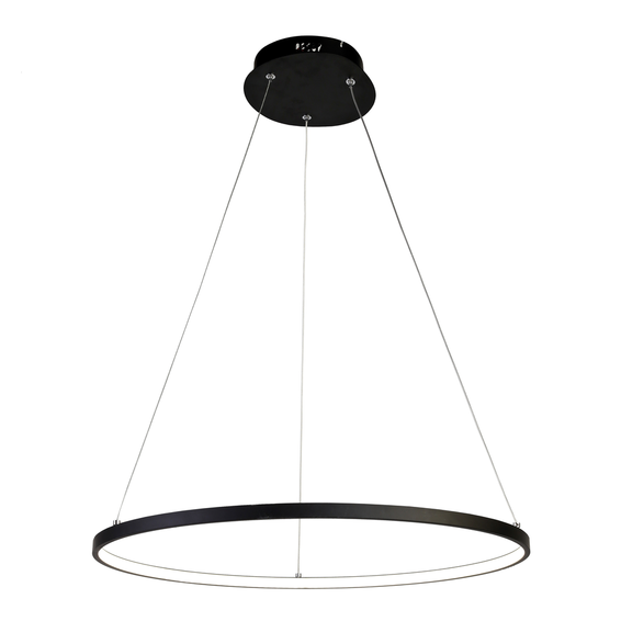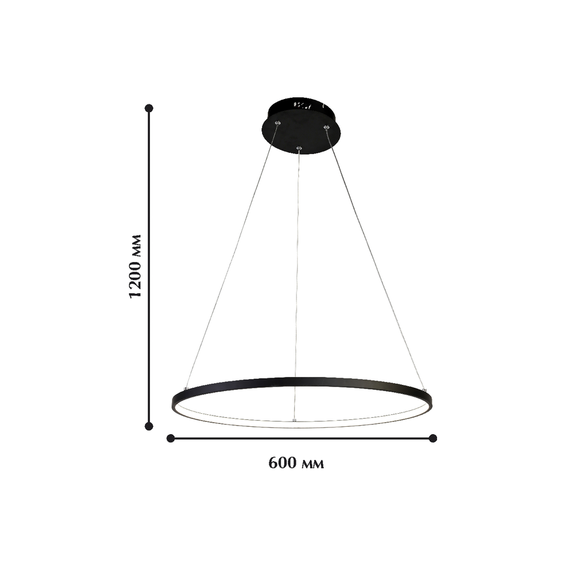 Каркас светильника из металла черного цвета, тросы регулируются по высоте, акриловый рассеиватель LED белого матового цвета.