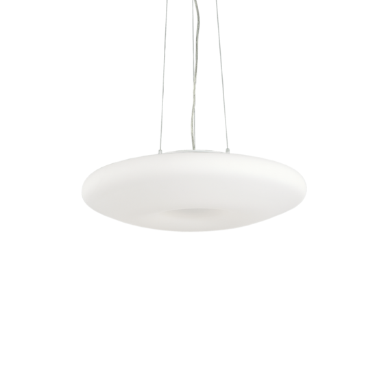 Арматура матового никелевого покрытия. Рассеиватель из белого дутого матового стекла. Подвесы со стальными тросиками регулируемые по длине с помощью автоматического устройства.