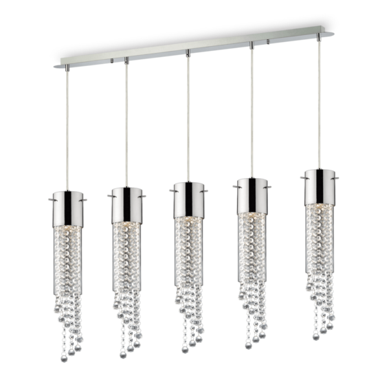 Арматура из металла с хромовым покрытием. Трубчастый рассеиватель из стекла Pyrex. Декоративные элементы из хрустальных восьмиугольников и капель фацетной огранки. Электрические провода регулируются по длине.