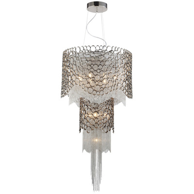 Арматура светильника сделана из металла,окрашена в хром,плафон металлический,декоративные подвески из хромированных металлических цепочек.