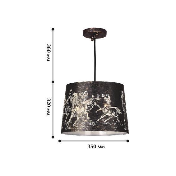 Каркас и крепежные детали из металла .Цвет арматуры темно-коричневый с золотой патиной.Цвет плафона темно-коричневый с узором. Материал плафона пластик.