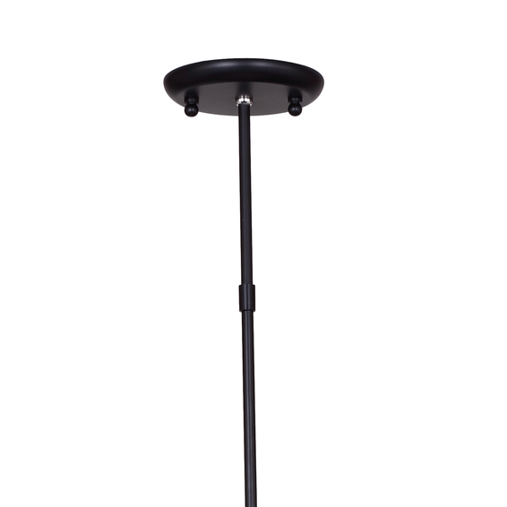Металлический каркас светильника черного цвета, декоративные элементы хромированные. Центральная крепежная труба состоит из двух частей.
