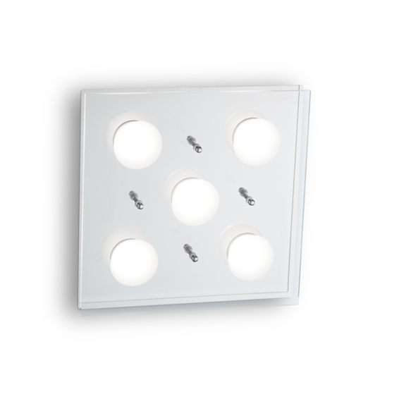 Основа и детали из хромированного металла. Рассеиватель из прозрачной стеклянной пластины закругленными элементами в пескоструйной обработке. Встроенные LED.