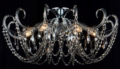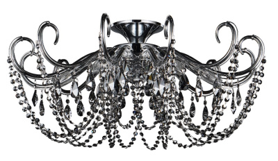 Арматура светильника сделана из металла,хромированная.Корпус светильника из дымчатого стекла.Подвески из дымчатого хрусталя.