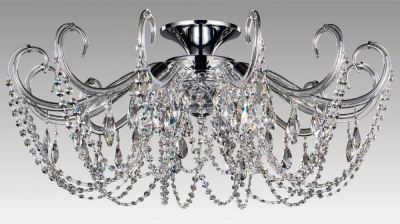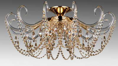 Арматура светильника сделана из металла,хромированная.Корпус светильника из дымчатого стекла.Подвески из дымчатого хрусталя.Доступен в хроме с прозрачным стеклом,код-2031/106 PL6 и в золоте,код-2032/106 PL6 .