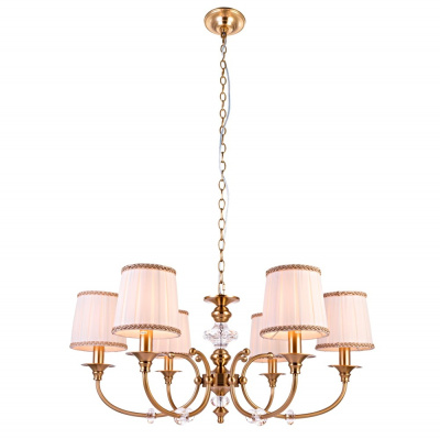 Арматура светильника сделана из металла,окрашена в цвет античной бронзы.Плафоны из текстиля бежевого цвета.Декоративный элемент из хрусталя.