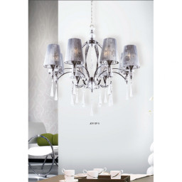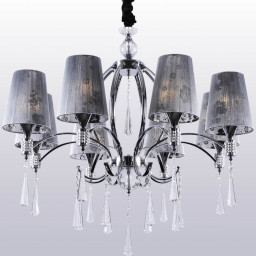 Арматура светильника сделана из металла,хромированная.Материал абажура пластик+ткань,серого цвета.Декоративная подвеска из хрусталя.
