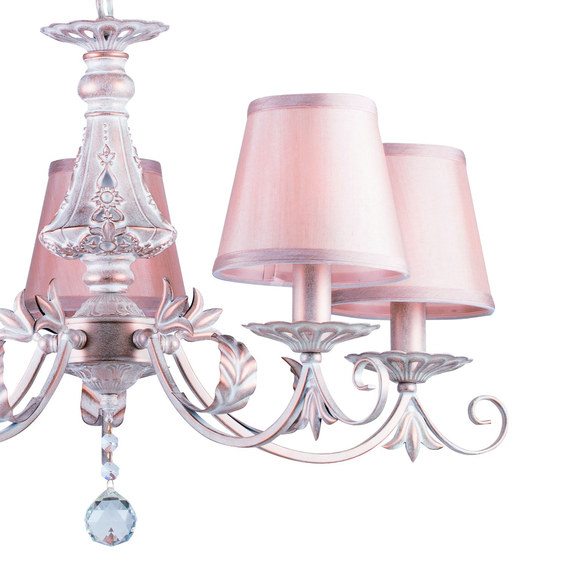 Каркас светильника из металла, окрашен в белый с густой жемчужно-золотистой патиной. Атласные абажуры кремового оттенка .