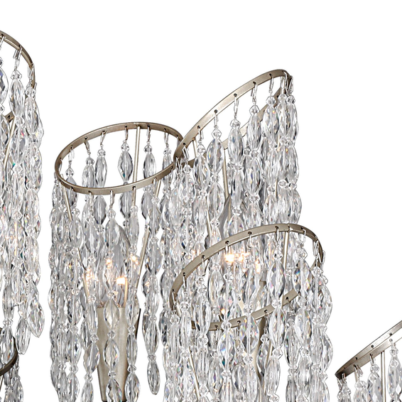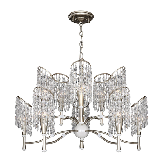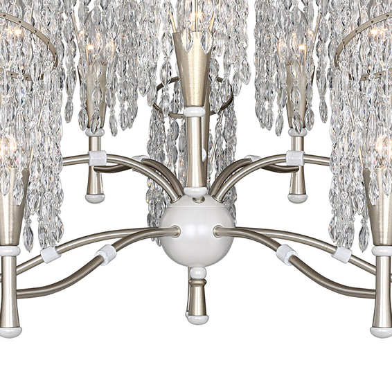 Каркас изготовлен из металла, окрашенного в золотистый цвет в сочетании с жемчужно-белым, подвески из хрустальных бусин оригинальной формы.