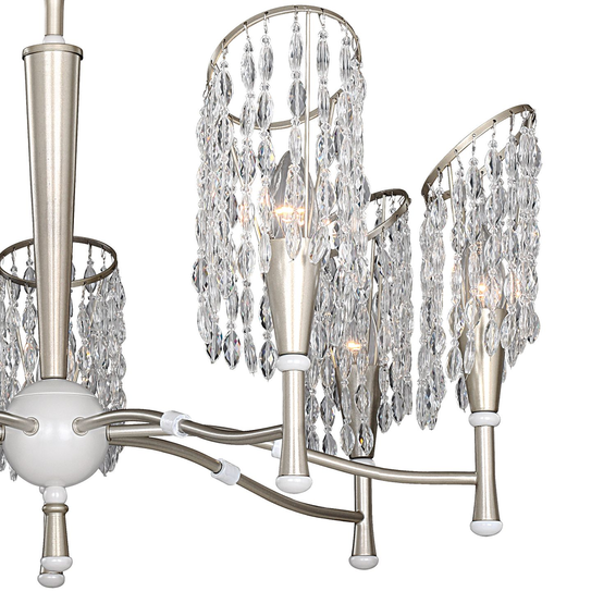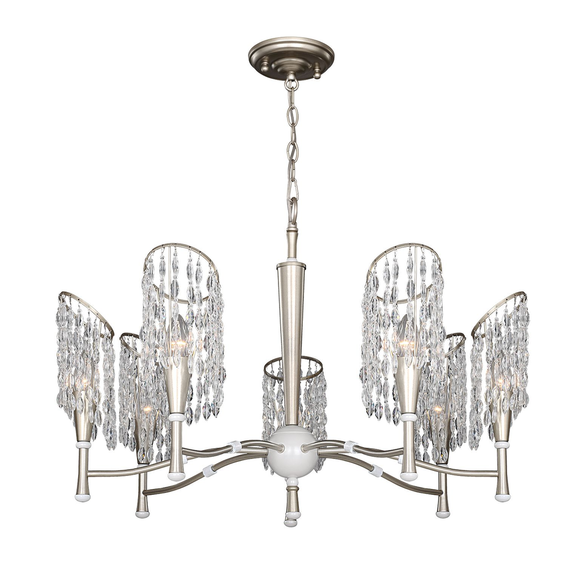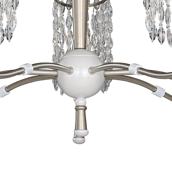 Каркас изготовлен из металла, окрашенного в золотистый цвет в сочетании с жемчужно-белым, подвески из хрустальных бусин оригинальной формы.