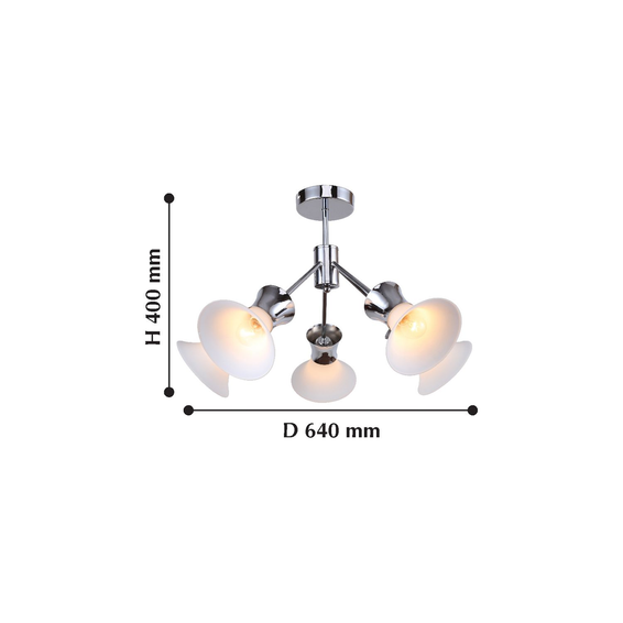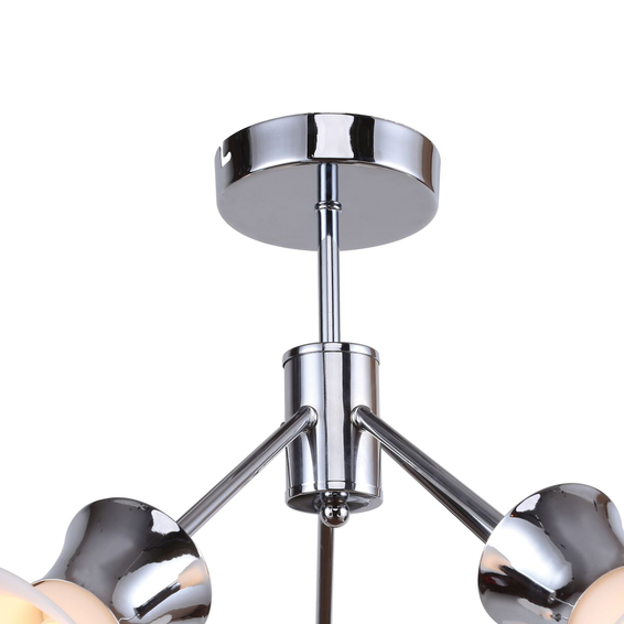 Каркас светильника из металла,хромированный.Дополнен стеклянными белыми плафонами.