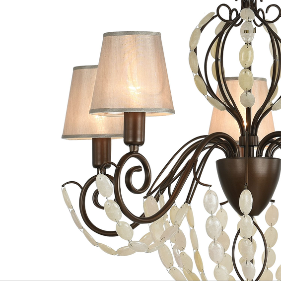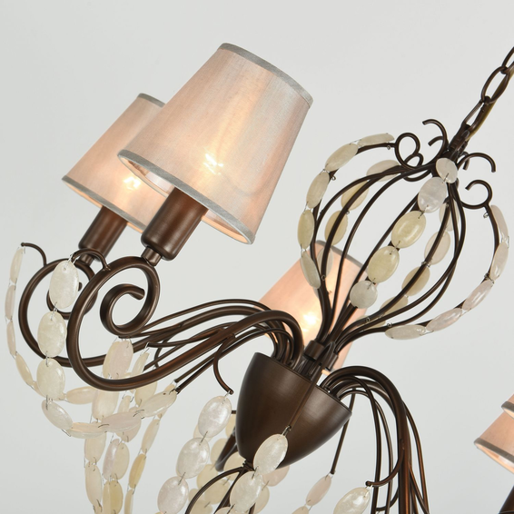Каркас изготовлен из металла, окрашенного в коричневый цвет, декорирован подвесками из крупных стеклянных бусин кремового цвета, напоминающих натуральный камень (мрамор).