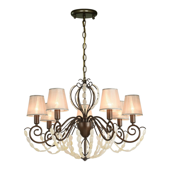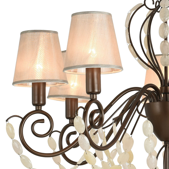 Каркас изготовлен из металла, окрашенного в коричневый цвет, декорирован подвесками из крупных стеклянных бусин кремового цвета, напоминающих натуральный камень (мрамор).
