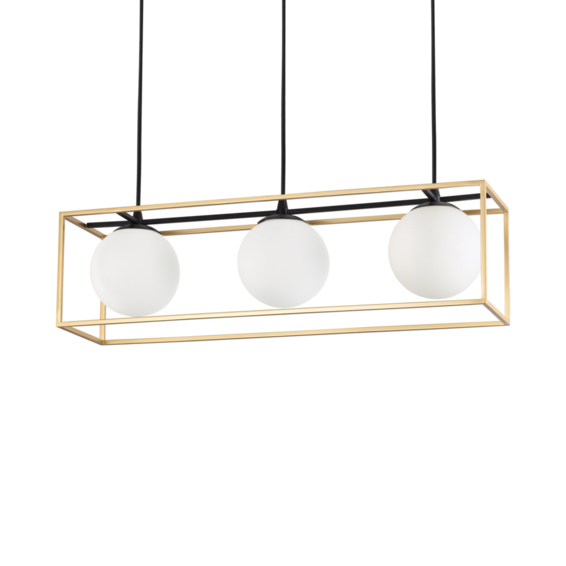 Арматура из окрашенного металла: матовая чёрная основа и каркас из матовой латуни. Рассеиватели из облицованного дутого матового стекла.