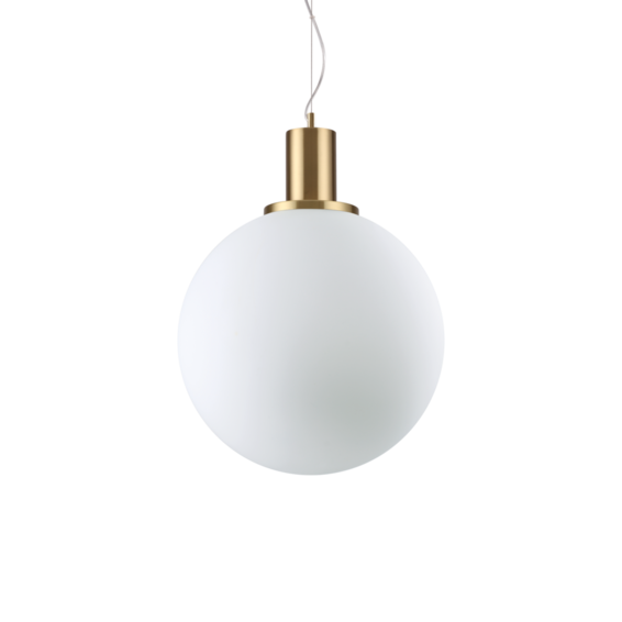 Арматура из металла матовой латуни покрытия. Рассеиватель из облицованного дутого матового белого стекла.