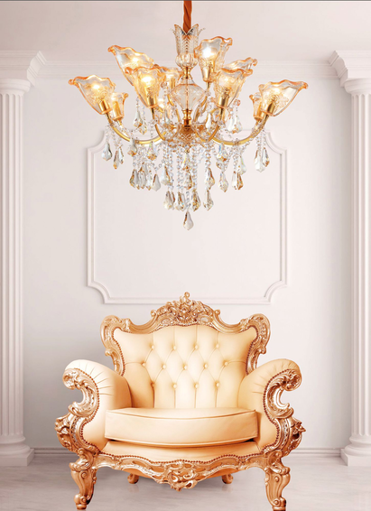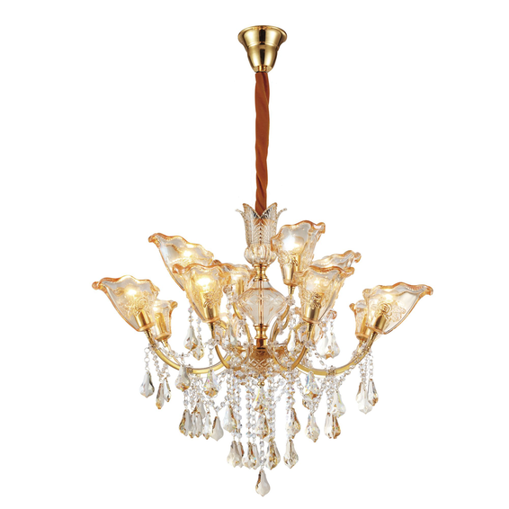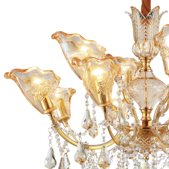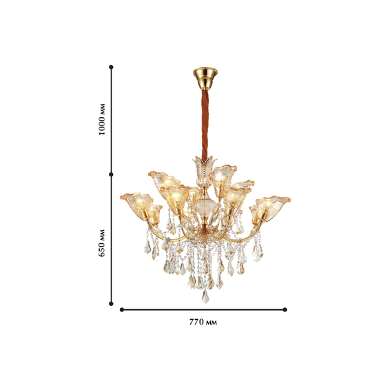 Корпус из металла золотого цвета.Чаши и подвески из хрусталя цвета золотого шампанского.