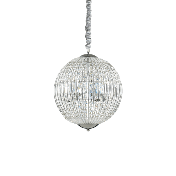 Арматура из хромированного металла. Рассеиватель из декоративных восьмиугольных прямоугольных элементов из хрусталя с фацетом. Цепь скрыта бархатной тканью.