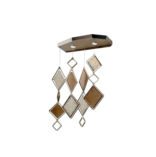 Металлический каркас доступен в различных вариантах отделки:матовая бронза,матовый черный никель,матовый хром.Декоративные подвески из оникса и из муранского стекла:белый оникс,дуб,прозрачное или копченое. Муранское стекло-прозрачное или копченое муранское стекло в сочетании с дубом,в сочетаний с белым ониксом ,белый оникс в сочетании с дубом.