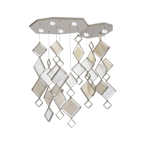 Металлический каркас доступен в различных вариантах отделки.Декоративные подвески из оникса и из муранского стекла.