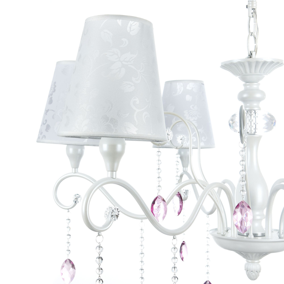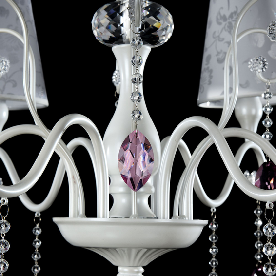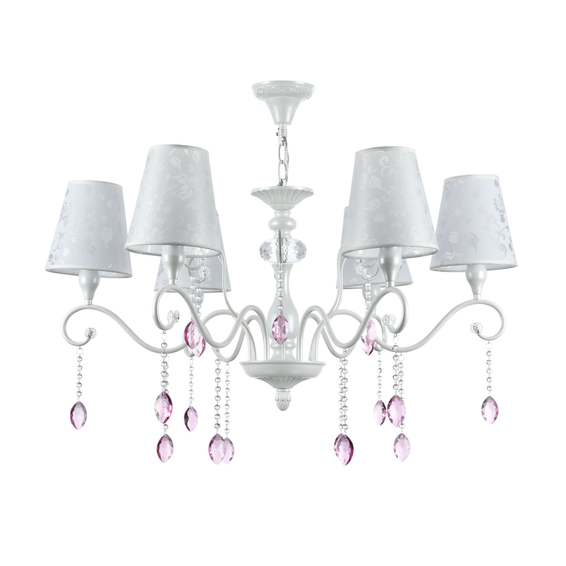Отделка арматуры - жемчужного белого цвета, абажуры сделаны из сатина с цветочным рисунком.