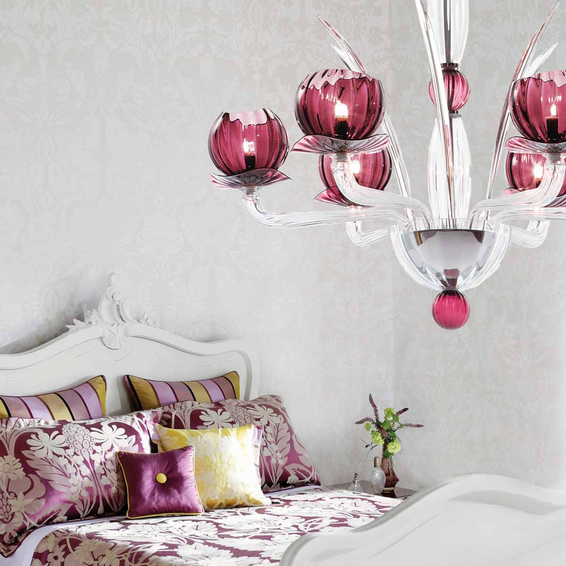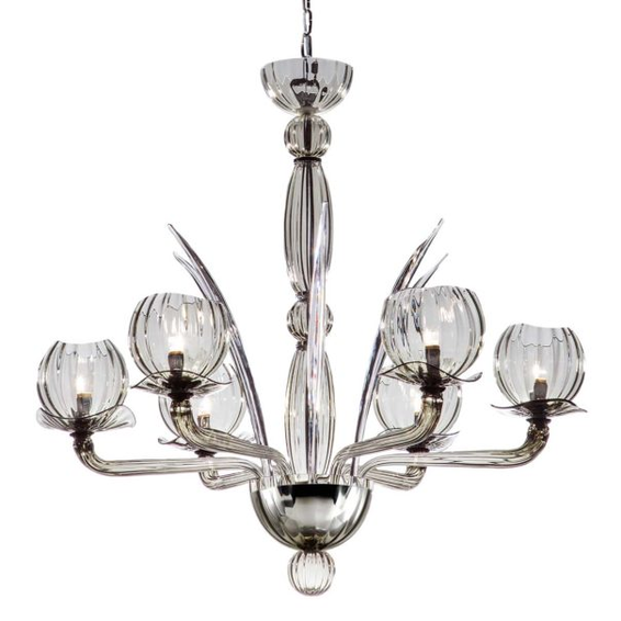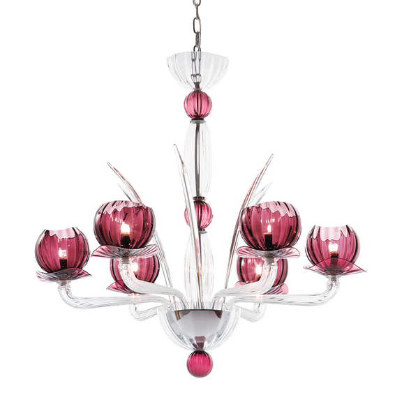 Каркас изготовлен из металла, плафоны и рожки из муранского стекла в разных цветовых решениях.