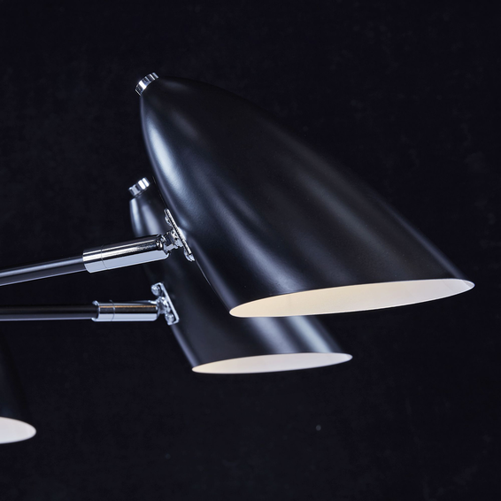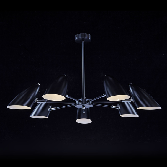 Арматура и плафоны сделаны из металла. Специальный механизм позволяет поворачивать плафоны люстр и бра на 90 градусов по вертикали и на 180 градусов по горизонтали. Модель представленна в 2-х цветах. Чёрный - Артикул FR5852-CL-07-B