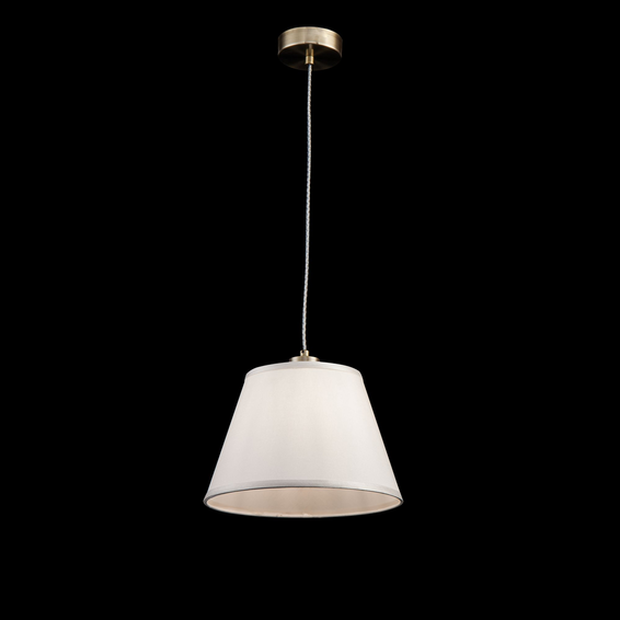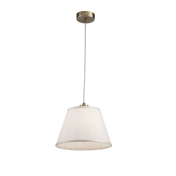 Металлическая арматура светильников Alessandra цвета бронзы сочетается с кремовым цветом абажуров из ткани. Абажуры окантованы лентой в тон. Дизайн арматуры дополнен декоративным элементом из стекла.
