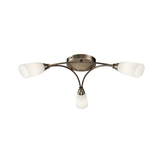 Металлическая арматура цвета бронзы расходится от основания к плафонам подобно стрелам. Плафоны сделаны из белого матового стекла.