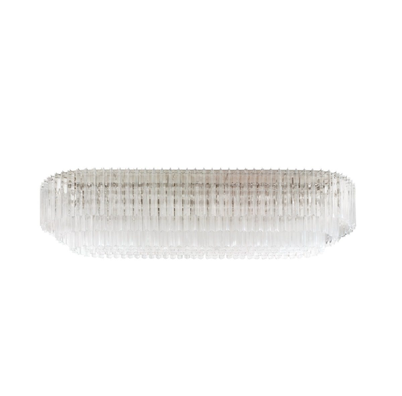 Арматура светильника сделана из хромированного металла,подвески из стекла в форме трехгранника. Доступен в белом,в в красном,в прозрачном и в янтарном.