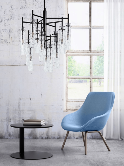 Арматура светильника сделана из сатинированного черного никеля, покрыта хромом. Плафон из муранского стекла,ручной работы.