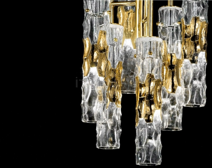 Арматура светильника сделана из сатинированного черного никеля,позолоченная 24-каратным покрытием. Плафон из муранского стекла,ручной работы,декорирована золотой полосой. Доступен в хроме,в никеле и в черном никеле.