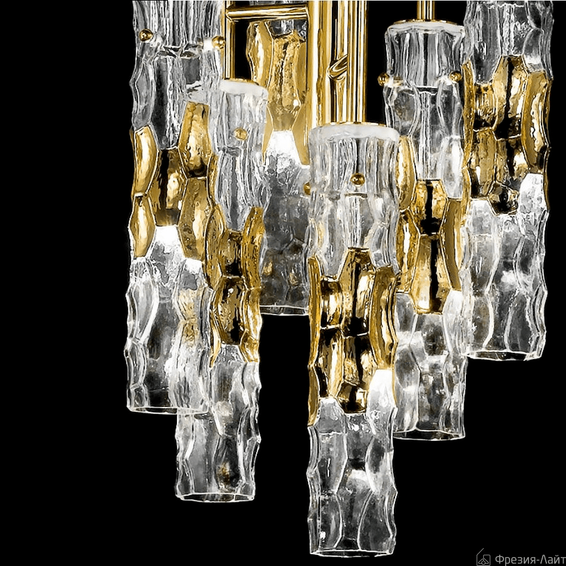 Арматура светильника сделана из сатинированного черного никеля, покрыта хромом. Плафон из муранского стекла,ручной работы.
