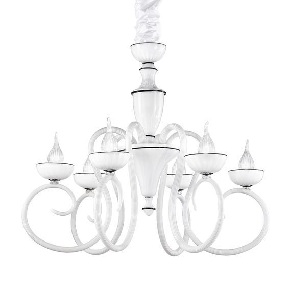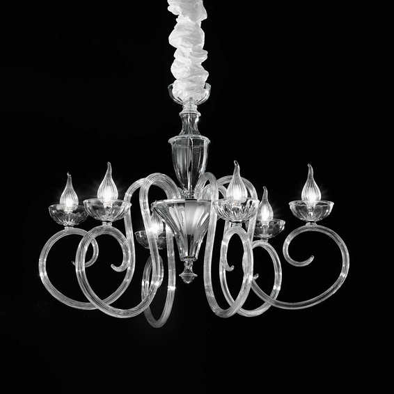 Каркас изготовлен из хромированного металла Прозрачные стеклянные оболочки Pyrex. Доступен с рамкой из муранского стекла в следующих цветах: прозрачный, молочно-белый с черными профилями, черный с молочно-белыми профилями.