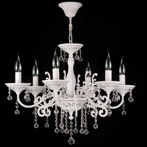 Арматура из металла. Керамические подсвечники украшены рисунком. Подвески из *хрусталя.