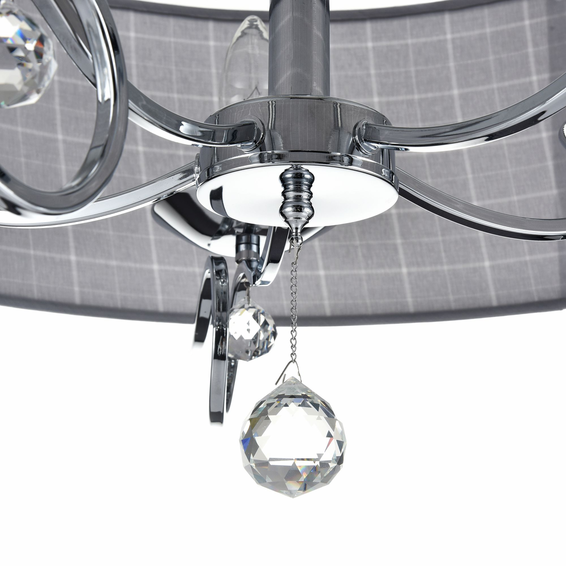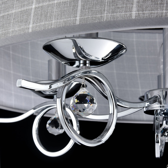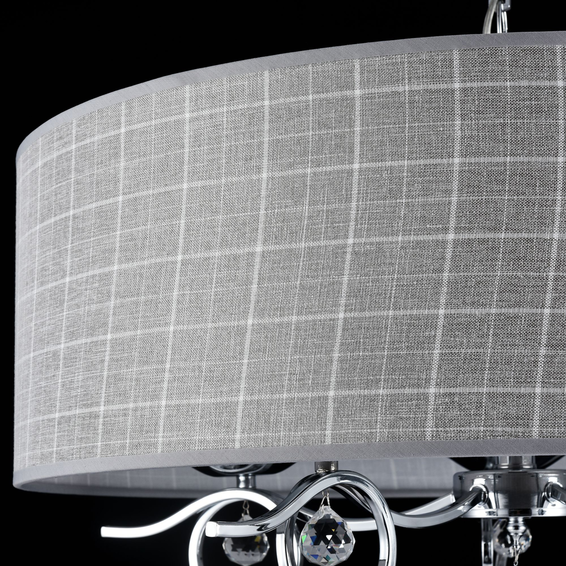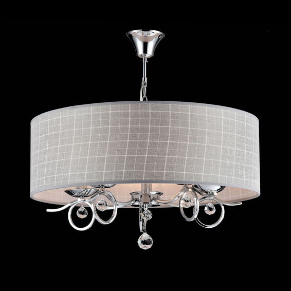 Сверкающие кристаллы и причудливо изогнутая арматура – это дань классическому стилю, а абажуры из хлопка в клетку – бесспорный элемент современного стиля.
