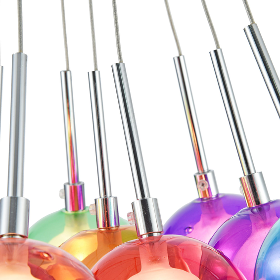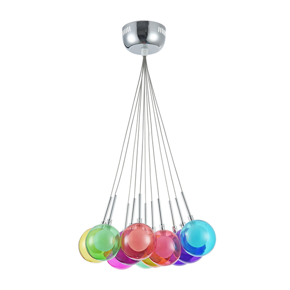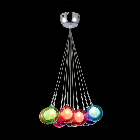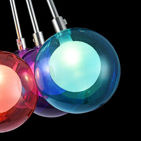 Светильники выполнены в виде разноцветных стеклянных шаров. Светильники сделаны из металла и стекла.