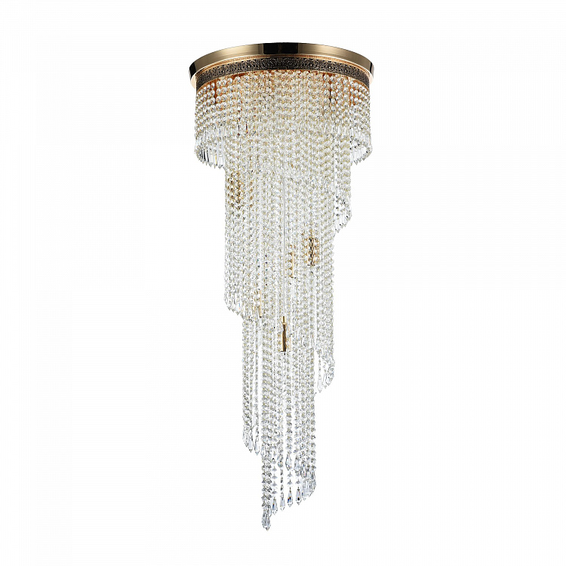 Круглый каркас из металла обрамлен латунной лентой. Подвески из хрусталя. Модель комплектуется лампочками Voltega и средством для чистки хрусталя. Дополнительный год гарантии.