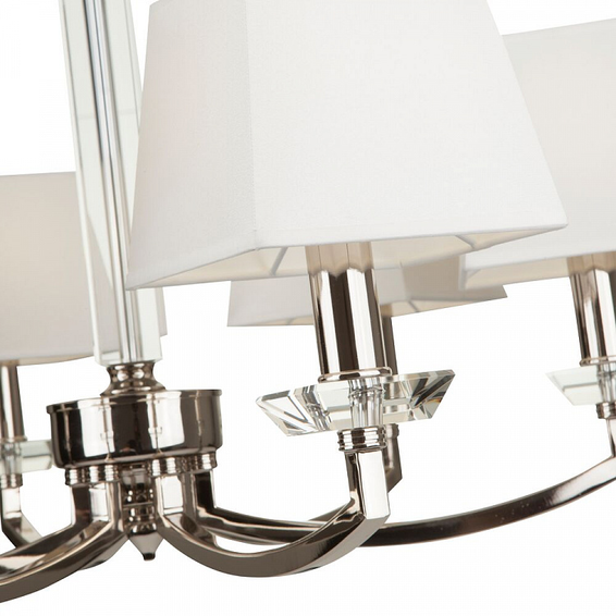 Арматура из металла. Декоративные элементы из стекла. Абажур из ПВХ покрыт белой тканью. Основа абажура - трапеция.