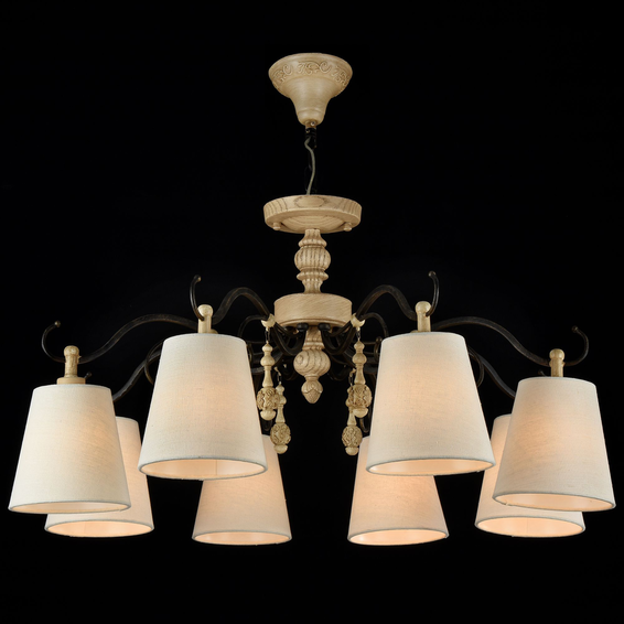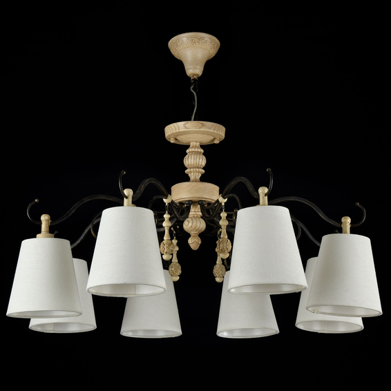 Арматура из металла. Декоративные элементы из полирезина. Абажур из ПВХ покрыт натуральной тканью.
