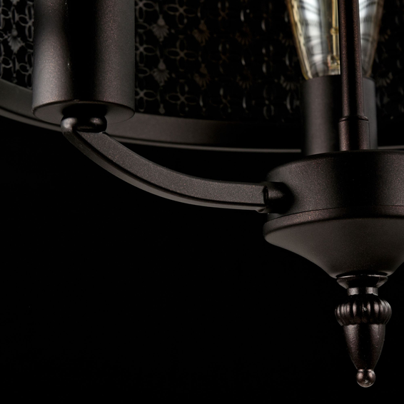 Резные абажуры люстр, выполненные из металла цвета "античный коричневый", придают светильникам строгий, но в тоже время торжественный вид.