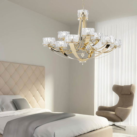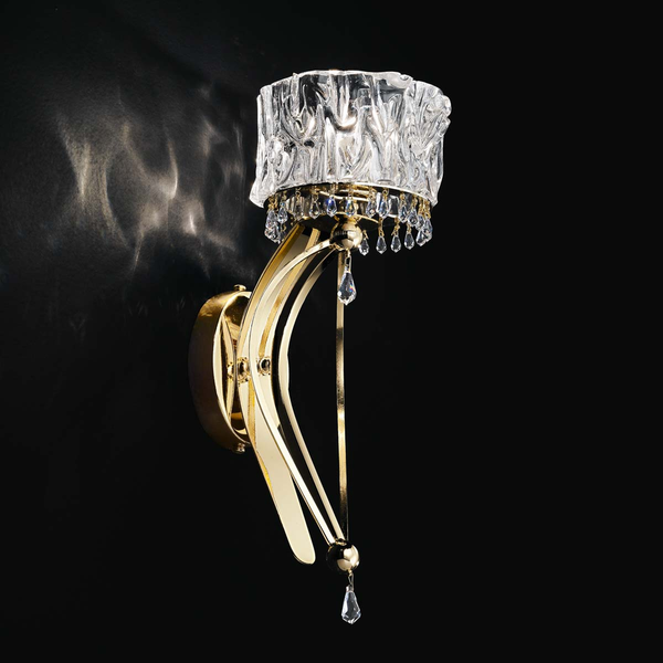 Каркас изготовлен из металла, плафоны из муранского стекла, с декоративными элементами Swarowski Crystals. Доступен в хромированном и золотистом цветах и в цвете чеерный баклажан.