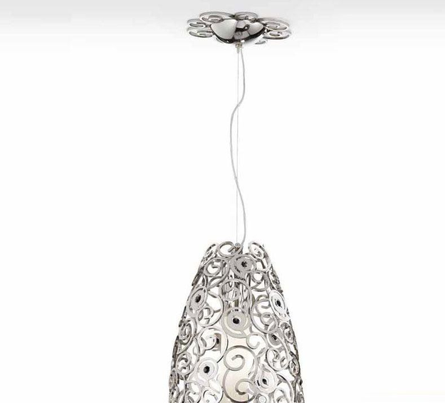 Каркас изготовлен из металла, в виде ажурной сетки, с декоративными элементами Swarowski Crystals. Доступен в следующих сочетаниях: хром и черные подвески, светлое золото и красные подвески, бронза и янтарные подвески. Доступен с лампами по цоколю G24 - CRYSTAL MARINE 491/1SP.