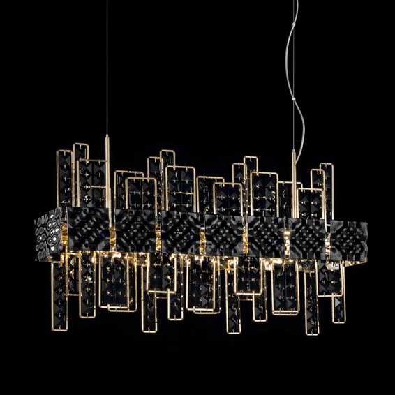 Арматура светильника сделана из металла,хромированная или легкого золота. Вырезанные хрустальные элементы в разных цветах:прозрачный кристалл,белый кристалл,красный кристалл,черный кристалл.
