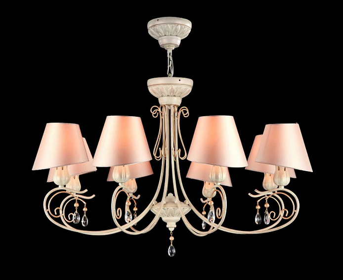 Арматура из металла. Абажур из ПВХ покрыт тканью. Подвески из *хрусталя