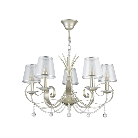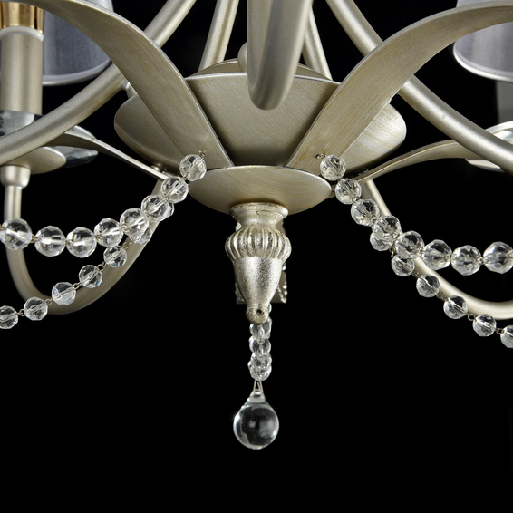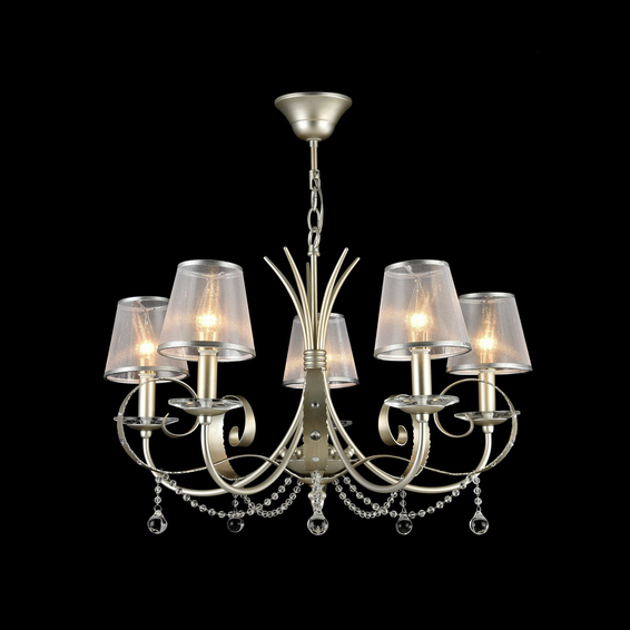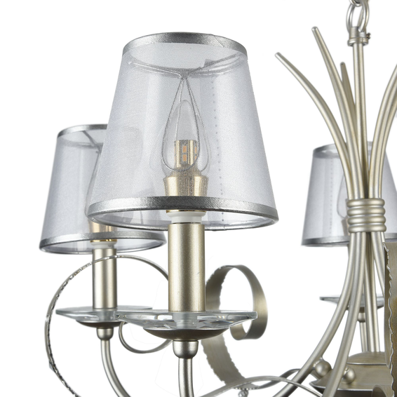 Благодаря полупрозрачным абажурам из органзы и затейливо изогнутой арматуре серебристо-коричневого цвета светильники смотрятся воздушными и невесомыми.