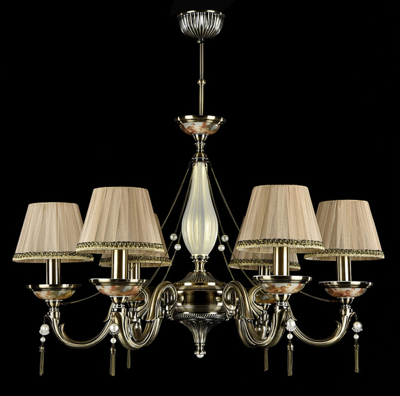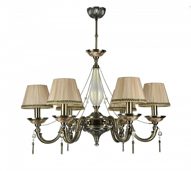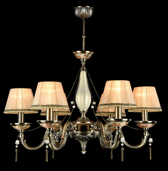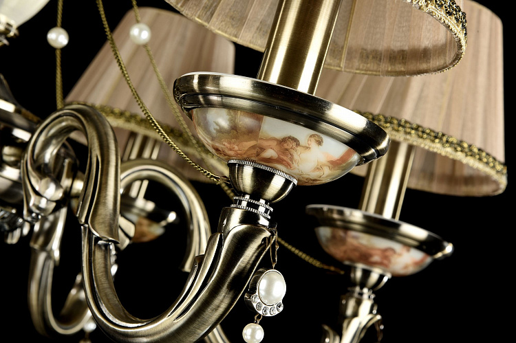Арматура из металла. Жемчужина в основании и подвесках. Абажур из органзы.