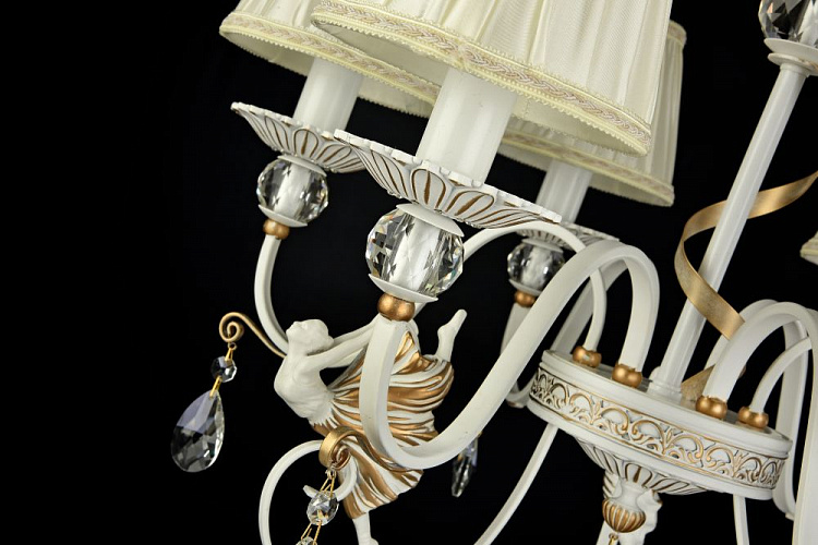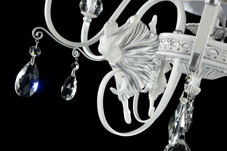 Арматура из металла. Декоративные элементы в виде балерин из полирезина и лент. Подвески из *хрусталя. Модель представлена в 2-х цветах. Цвет Белый с серебром - Артикул ARM222-06-N