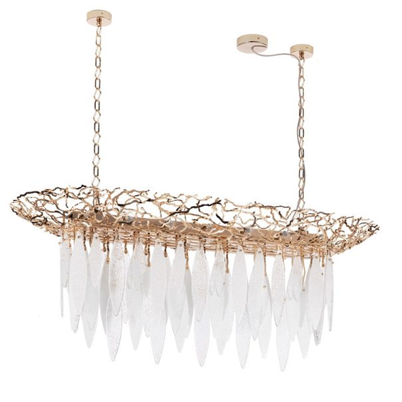 Каркас изготовлен из металла, Стеклянные листья доступны в прозрачном, белом и черном цвете, металлические листья — в тон с отделкой.